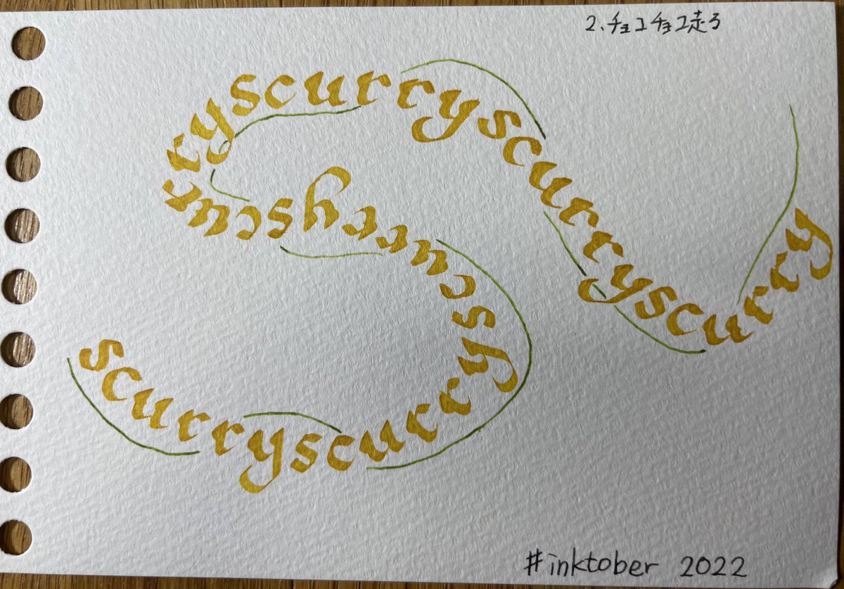 インクトーバー2日目 #inktober2022 #calligraphy ・カロリンジャン体 ・hocoro 2.0/1.0 ・花かんむりとお昼寝she ・Art calligraphyオリーブグリーン