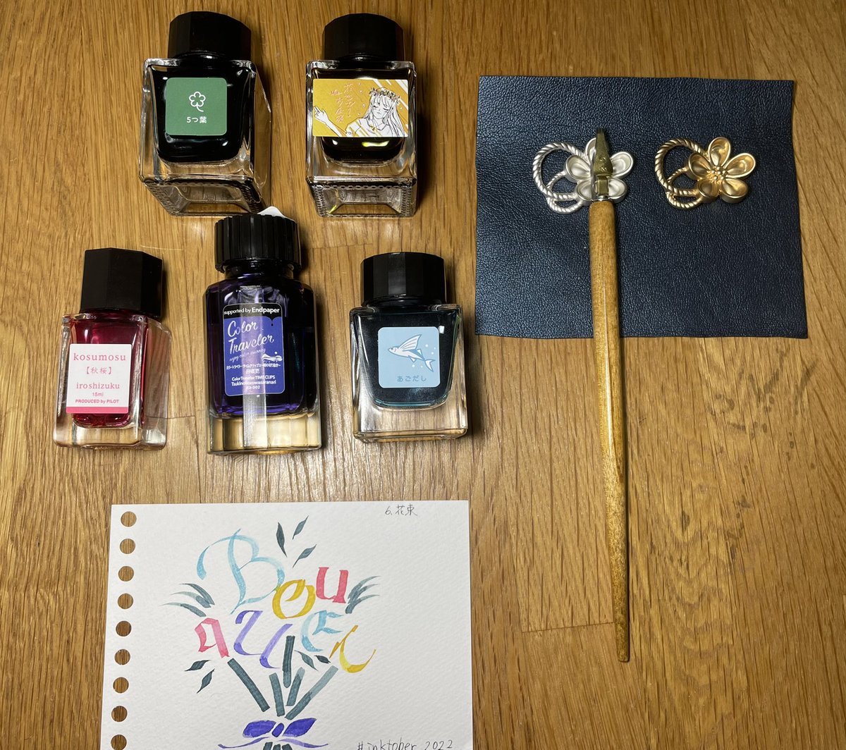 インクトーバー6日目 インクも書体ももりもり使った✨ #inktober2022 #calligraphy ・イタリック体 ・ゴシック・テクスチューラ体 ・アイリッシュ小文字体 ・スピードボールC-2 ・あごだし ・月頃更 ・花かんむりとお昼寝she ・秋桜 ・5つ葉