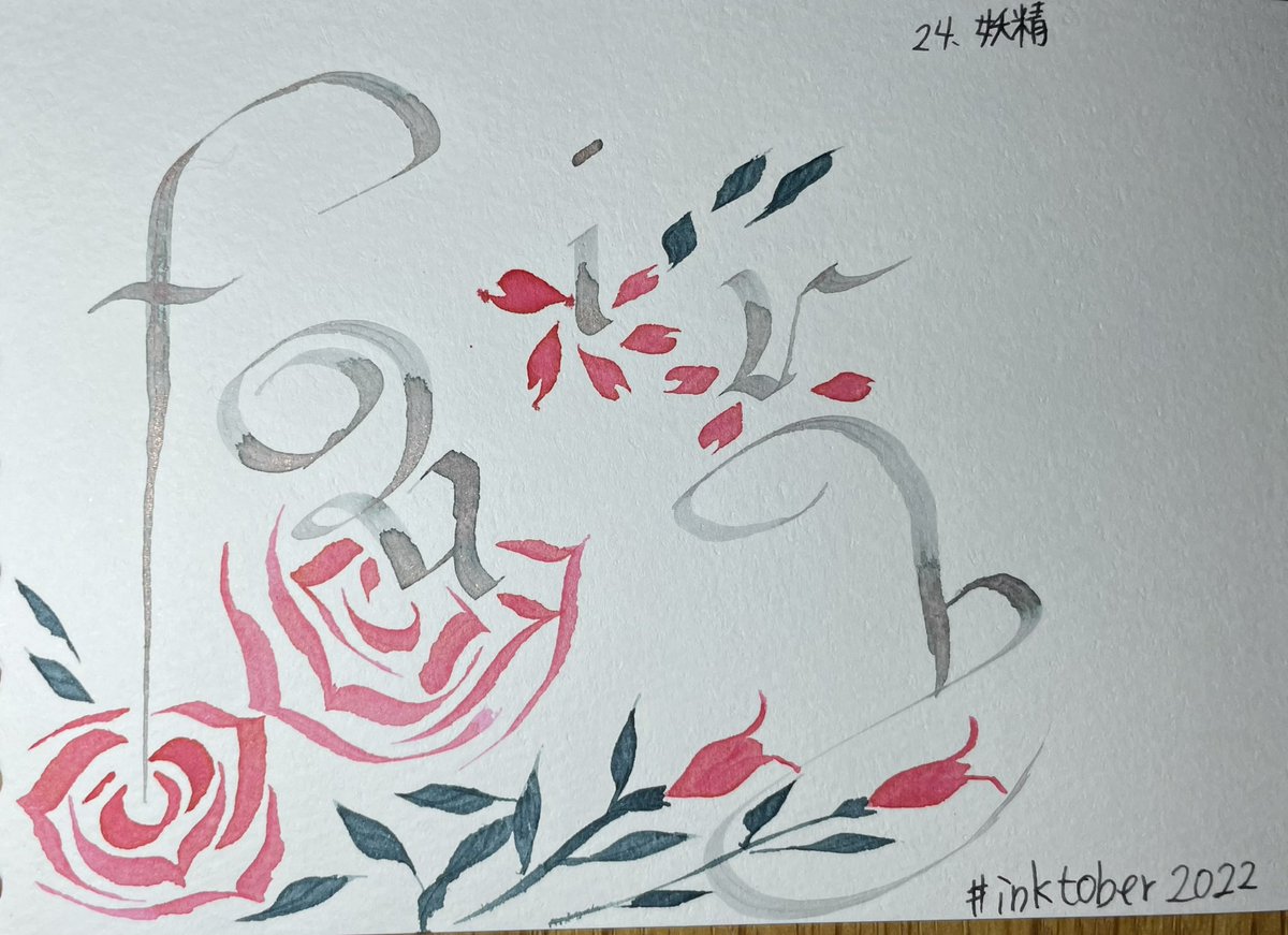 インクトーバー11日目 絵が少しでも描けるようになれば、表現の幅が広がるのになぁ…😓 水筆は楽しくなってきた♪ #inktober2022 #calligraphy ・チャンセリー体 ・ブラウゼ3.0 ・ガラスペン ・水筆 ・あごだし ・花かんむりとお昼寝she ・Blanc-white ・フィーカ