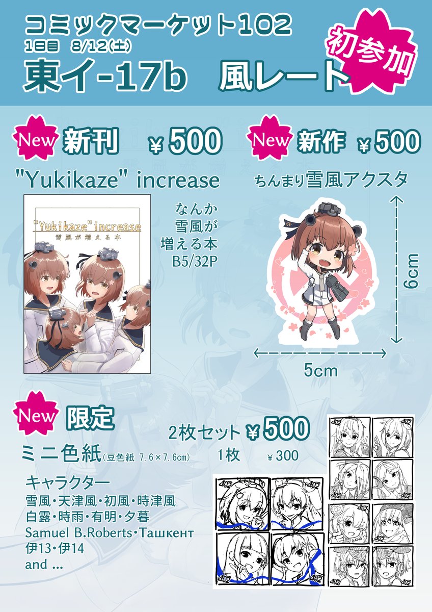 ◎あなたのサークル「風レート」は 土曜日 東地区 “イ” ブロック 17b に配置されています。 ありがとうございます。頑張ります