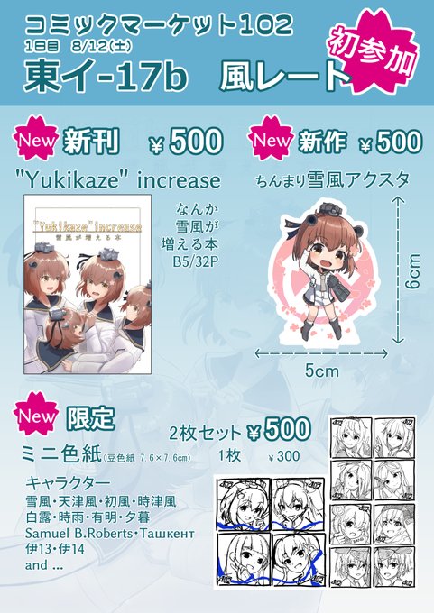 43 70 遅くなりましたが夏コミのお品書きです。初めてのコミケ、初めての同人誌。初めて尽くしのサークル参加です。1日目東イ-17b「風レート」よろしくお願いします。 23/08/09 21:17