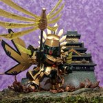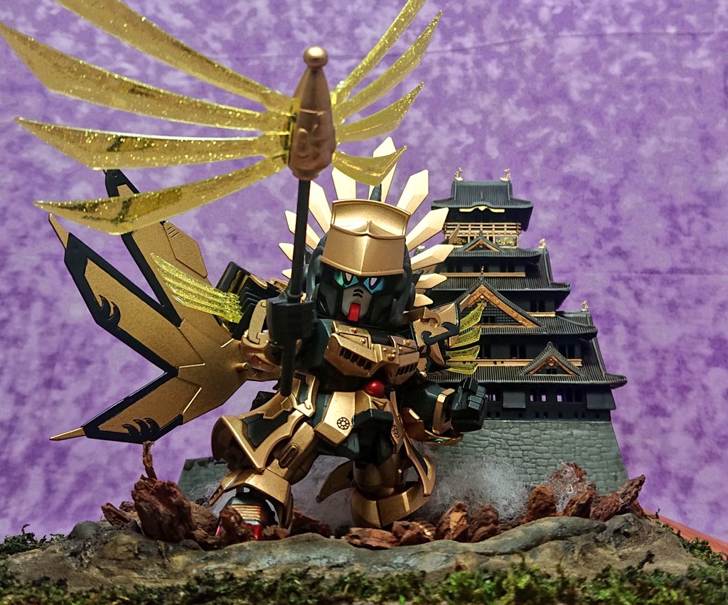 #ガンプラ & #城プラ シリーズ第2弾! 秀吉頑駄無と豊臣大阪城の『太閤戦記』が完成しました!! 明日から始まる #岐阜タム模型展 ガンダム部門に展示します。 秀吉頑駄無はCSフリーダムガンダムとのニコイチ、そして大阪城には電飾が仕込んであります。 サイコフレームの輝きを生で是非ご覧下さいw