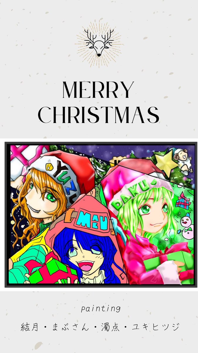 クリスマスイラスト4人で合作してみましたヾ(°∀° )/ 楽しかったです!ありがとう! #イラスト合作 #イラスト #일러스트 #illustration #クリスマスカード #塗り合作 #タグ付け不可能なんで?