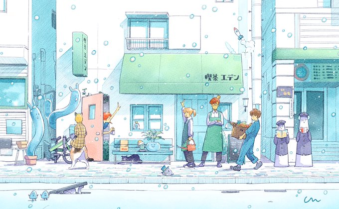 神保町の三省堂本店リニューアル直前にイベント用に描いたもので、右の建物は古い三省堂の店舗をモデルにしています。自分にとって本屋さんは秘密基地です。 twitter.com/i/web/status/1…