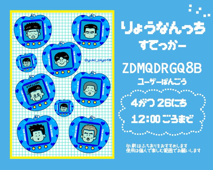 しょーほくバージョンねっぷり登録しました♡ 一緒にりょうなんも再登録しています。 ・印刷時フチあり推奨 ・使用は個人で楽しむ範囲でお願いします ・印刷できるコンビニはLAWSON、FamilyMartです 登録期間 5月6日(土)15時頃まで。