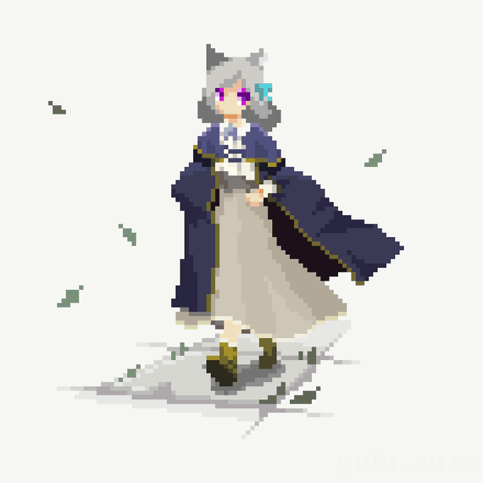 魔法使いの子、魔法発動の構え。 一枚目は正装、二枚目はマントを外したものです。 #pixelart #ドット絵