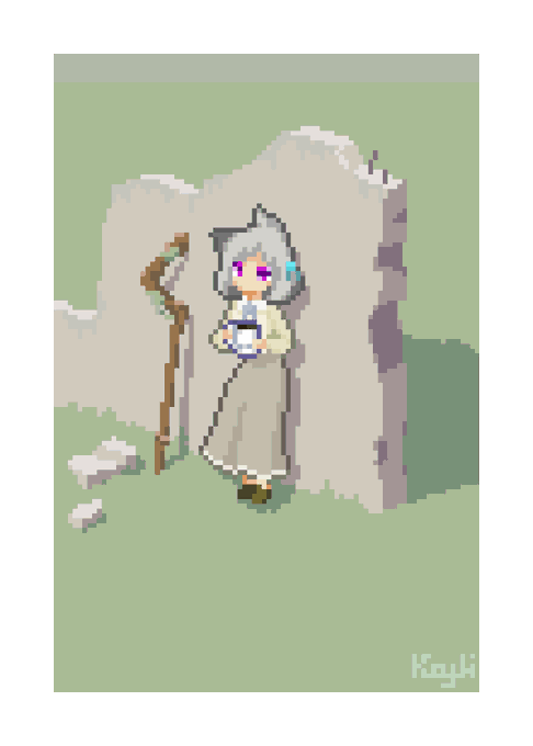 魔法使いの子と、大地の杖。 #pixelart #ドット絵