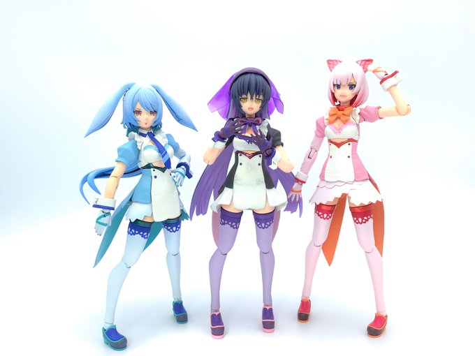 #うちの子描いてみませんかキャンペーン #絵描きさんにイラスト化してほしいプラモをモデラーさんが垂れ流す 久しぶりにこのタグ使わせていただきます メイド三姉妹です✨ 🟣グロワール(長女) 🔵デズィール(次女) 🔴アンヴィ(三女)