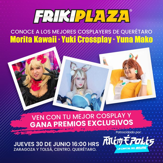 Amigos de Querétaro, los espero este próximo martes 8 en la #frikiplaza de Queretaro junto a @MoritaKawaiisex y Yuna Mako #queretaro #cosplay #frikiplaA