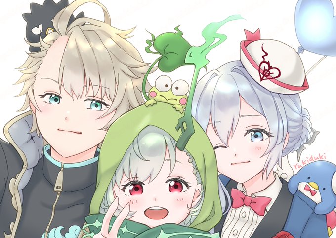 #シノアリス_ファンアート サンリオコラボ復刻ありがとう…推しの供給をありがとう…でも欲を言えばストーリーも欲しかったですぅ! 同じガチャに推し3人揃ってたので描かねば!!って思いました。 この3人、兄妹っぽくて可愛くないですか?長男アラジン、長女(2番目)スノウ、末っ子マチ子