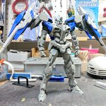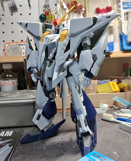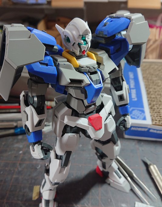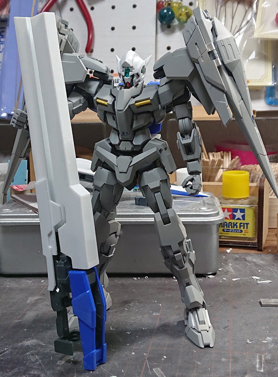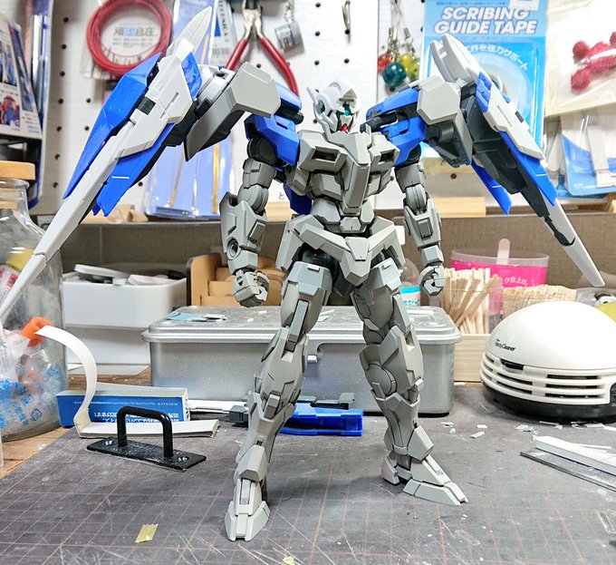 変更してくっつけた状態のオーライザー本体もいじってく!! 後ろの謎技術うちわみたいのは多分ブースターにすると思う #ガンプラ