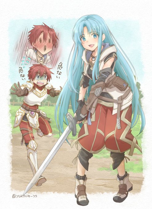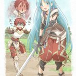 #イース版深夜のワンドロワンライ +20分 お題『ラクシャ(イースⅧ) 』『紫陽花』 「ここまで真っ赤な紫陽花は珍しくて、思わずあなたを思い出して…」 「べ、別にあなたのためにわざわざ摘んできたというわけでは…!」