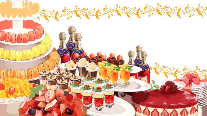 昔、表紙を描かせていただいたこちらのアンソロ、実は乱数くんの後ろのデザートブュッフェここまで描きこんでましたって画像が出てきたので供養 twitter.com/hpmJakRam/stat…