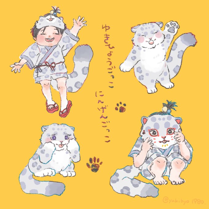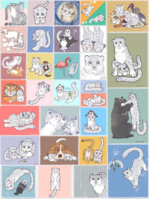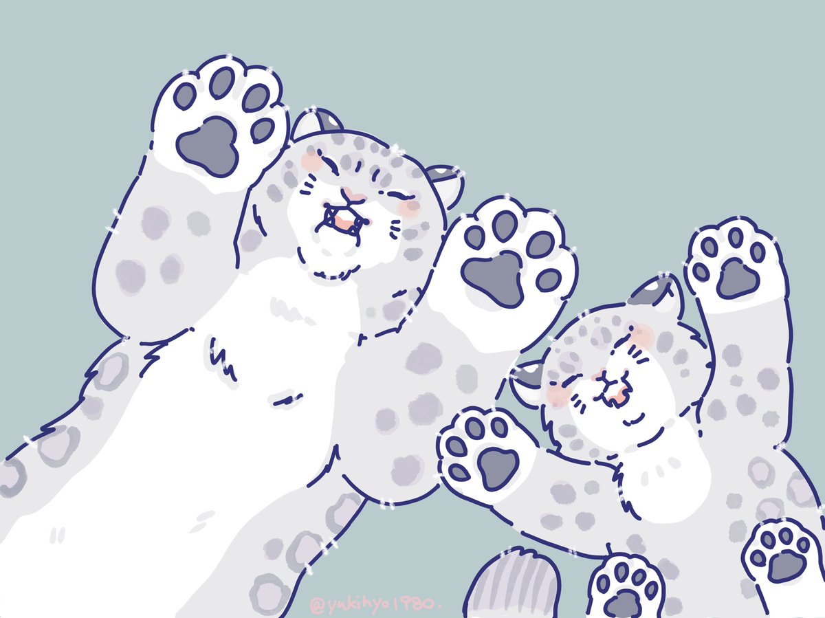 鬼ごっこだゾ‼︎🐆🐾 (すぐつかまった) #イラスト #ユキヒョウ