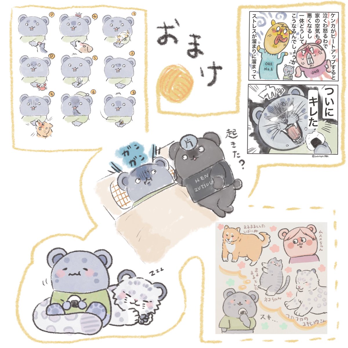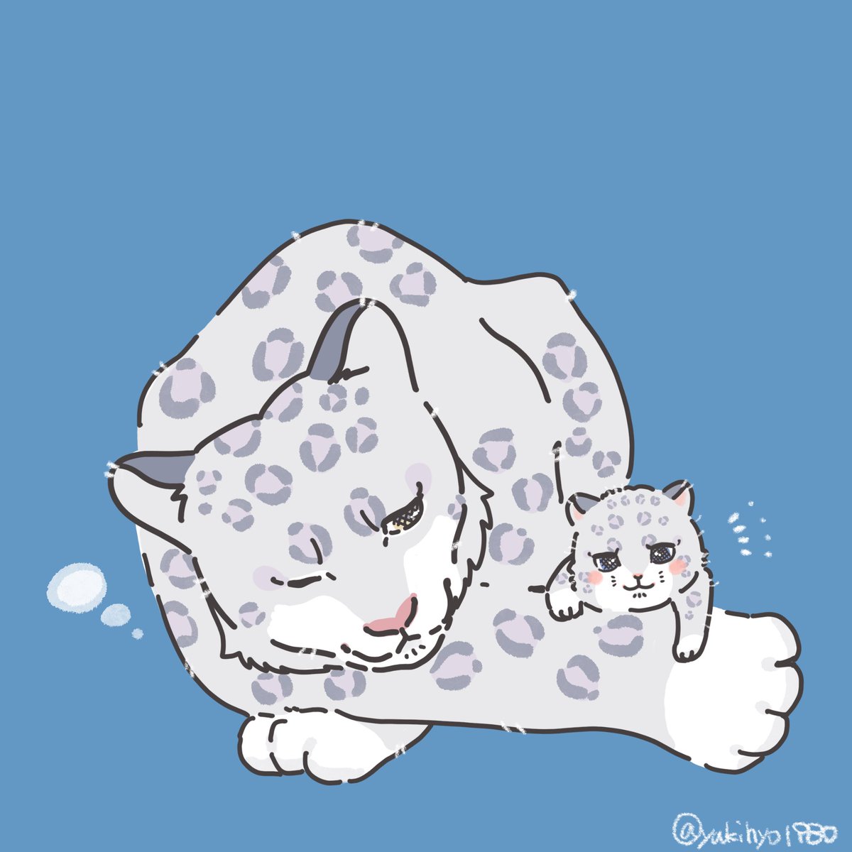 まだねむい💤 あれ!?おめめパッチリだゾ‼︎ #イラスト #ユキヒョウ
