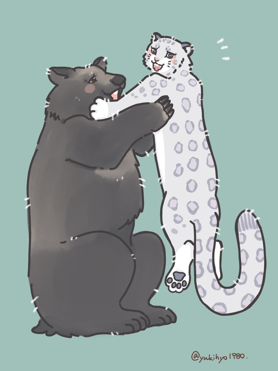 ほほえましいケンカ‼︎ #イラスト #ユキヒョウ