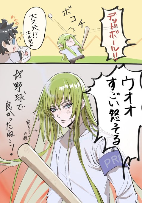 ※エルキドゥ 野球ネタ #FGO このまま一塁に走っていくもんだから乱闘でも始まるのかと思った⚾️