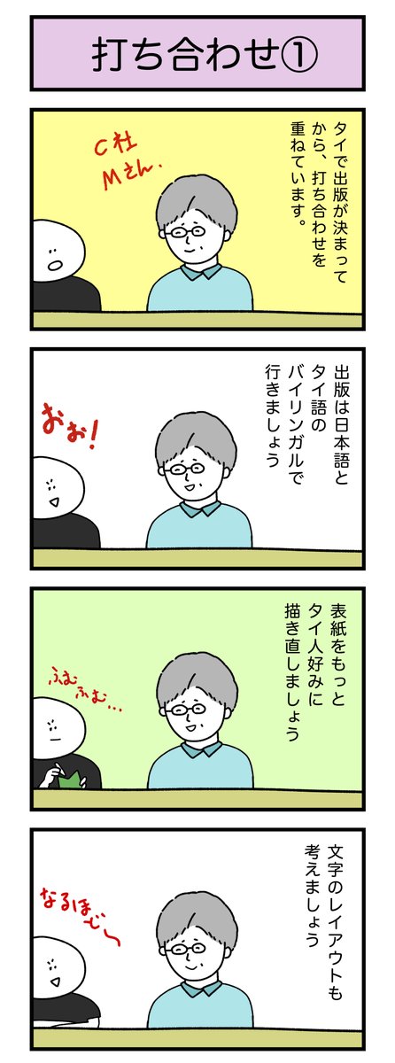【タイ旅残り64日】原稿を見てもらってる時の、あのドキドキは永遠に慣れることはないのでしょうね😂 #持ち込み #出版社 #絵本 #絵本作家 #タイ旅 #4コマ漫画 #コミックエッセイ #バンコク