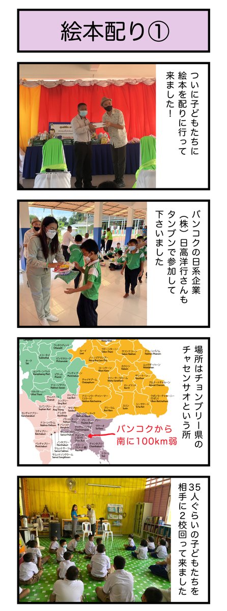 2 37 【タイ旅残り39日】地道にこうやって、絵本配りの足場を固めています😊🌈 #タイ旅 #絵本 #絵本作家 #4コマ漫画 #コミックエッセイ #エッセイ 22/02/27 10:25