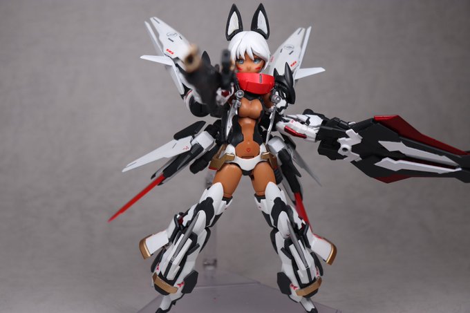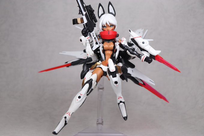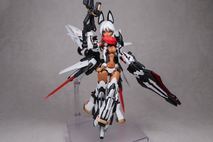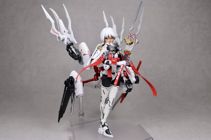 ペンテちゃんのガレキメインの武装、「試作カスタムワークス装備、"イル・マット"」シリーズ、新たな武装の追加で理想の形となったのでこれにて完成です! 最終的な武装名は「試作カスタムワークス装備改ニ、"イル・マット"」です! 振り返りも兼ねて装備設定&使用キット、繋げます。 #メガミデバイス twitter.com/yukimaru_white…