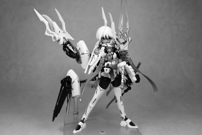 #プラモ垢で初めてバズった画像貼る見た人は好きにする 朱羅ベースの装備を初お披露目した時の写真。 スマホで中途半端な撮影ブースで撮ったやつだったし、この後デカール貼ったりしたのを上げたりしたのにこれが1番伸びた。300♡↑。 未だに超えられないの何故…もしやバイク効果か? #メガミデバイス