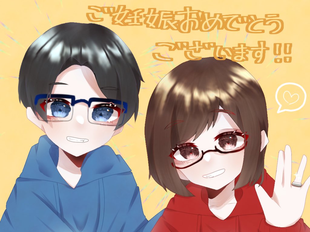 ご妊娠おめでとうございます!!! これからの活動も楽しみにしてますが体調には気をつけてください…(´;ω;`) YouTubeのサムネのげんさんが寄り添いさやさんの眩しい笑顔がすごく好きだったので描かせていただきました…✨ #なつめさんちの美術室 #なつめさんち