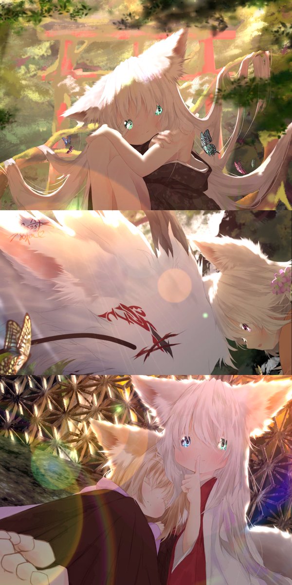 便乗〜 和風獣耳白髪少女描いてます〜(^^) 発掘してくれたら踊るくらいには喜びます ※タップ推奨! #三億アカウントの中から私を発掘してください