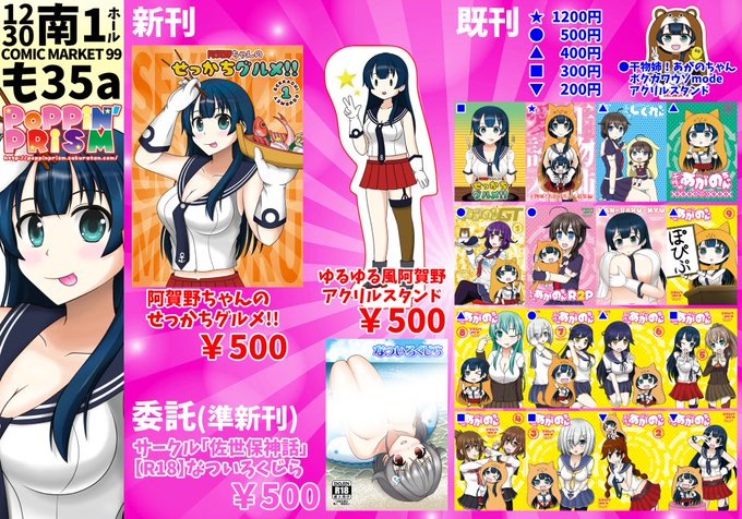 【C99告知🌟RTお願いします】 コミケ99のお品書きできました!当日はよろしくお願します! スペース:12/30(木) 南も-35a PoPPiN' PRiSM 新刊:艦これ・阿賀野本&アクリルスタンド 先行通販:maplebiscuit.booth.pm コミケ99情報:pkodama-snozomi.fanbox.cc/posts/3131566 #艦これ #C99 #C99A