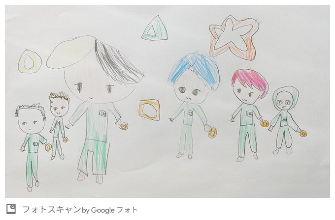 ヒカルさん:めちゃかわいいな。 わたし:ありがとうございます! ヒカルさん:何歳なん? わたし:6歳です。まえっさんの娘さんと一緒です! ヒカルさんの膝にのせてもらって、うれしかった!とのこと。 #ヒカルファンアート またいっぱい描くとのことです。 ありがとうございました♪