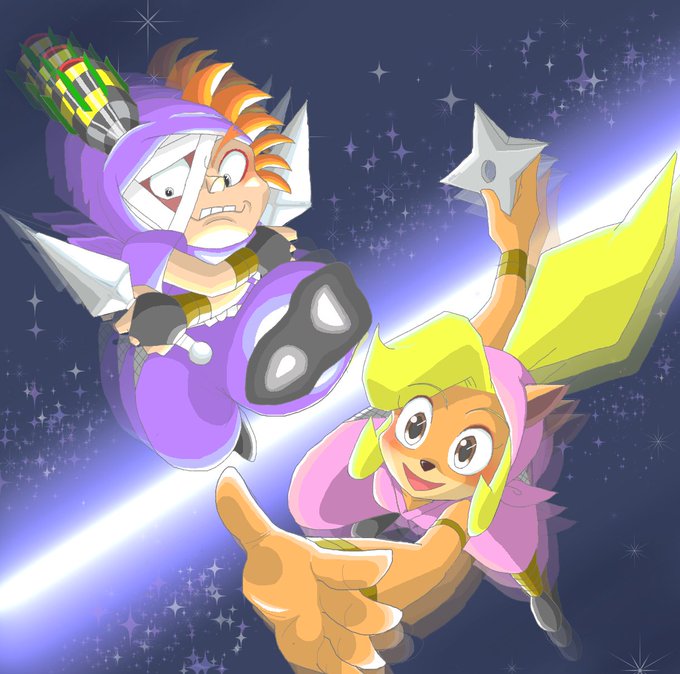 ココ&Nジンのイメージカラーがピンクと紫な点、めちゃくちゃ好きなんですよね…😊 (というか「レーシング」のメイン8キャラのカラーリングは、個人的に神だと思ってる民) #crashbandicootfanart #crashbandicoot