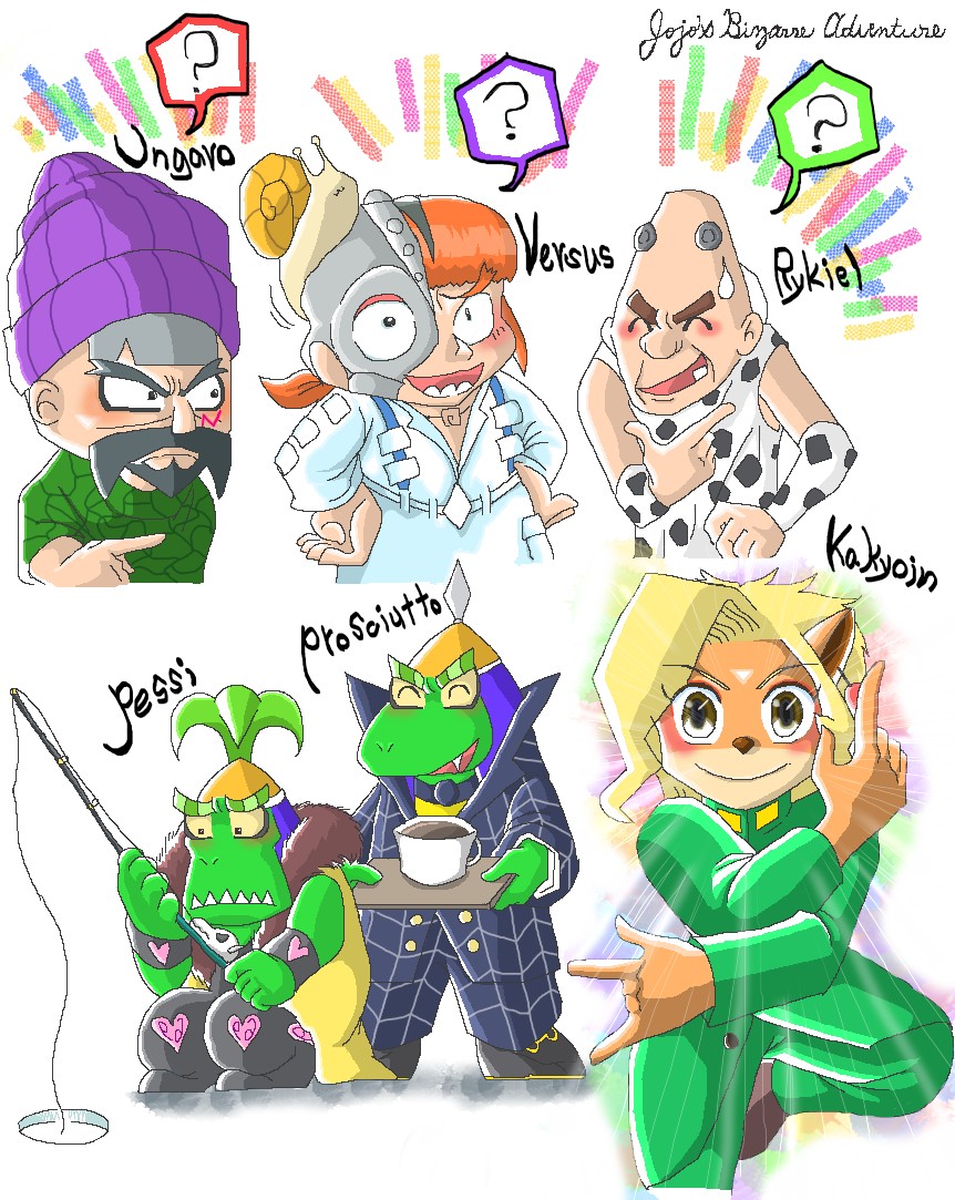 永遠に終わらなさそうなので、途中まであげておく其の2(´・ω・`)。 Neo.Cortex,N.Gin,N.Brio They are dressed in the clothes of characters from JoJo's Bizarre Adventure. #Crashibandicootfanart