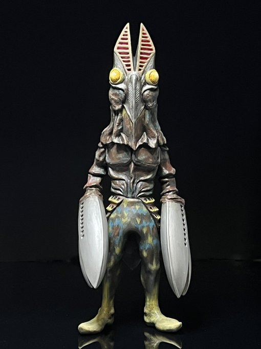 バルタン星人二代目 展示見本出来たぞ〜 コレは自分で言うのもアレだけどなかなかイイと思うぞ…? 塗装については好みもあるけど俺はこういう仕上げが好きなの。どこか絵の様な。 コツは顔とか身体にある青かな…あと茶色の豊富さ。単純な様で沢山色が乗ってるとぽくなると思う。
