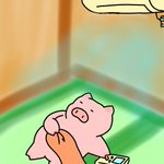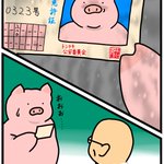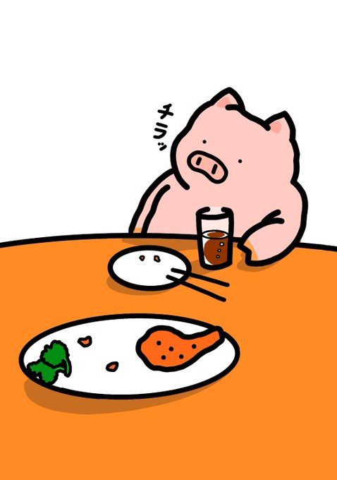 「最後のあれは自分が食べていいのか迷ってるブタ」🐷 気にしない感じを装いつつもチラ見する #イラスト #絵描きさんと繋がりたい #ゆるいイラスト #ゆるい絵 #動物イラスト #illustration #art