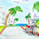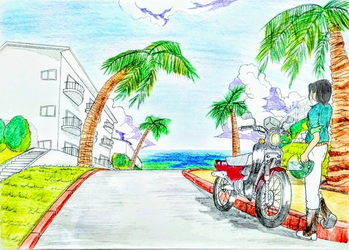 数年前にドライブで行ったチッタナポリを元に描きました ライダーのおねーさんカッコよかったなぁ🏍 #イラスト #アナログイラスト #初夏の創作クラスタフォロー祭り #絵描きさんと繋がりたい #風景画 #illustration