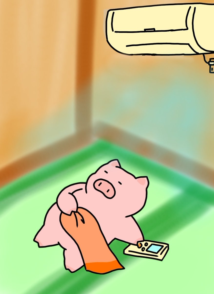 「今年もまたエアコンのリモコンを失くしちゃったブタ」🐷 仕方ないので本体から操作する 毎夏リモコンを探してる同士はいませんか? #イラスト #ゆるいイラスト #ゆるい絵 #絵描きさんと繋がりたい #イラスト好きと繋がりたい #夏の創作クラスタフォロー祭り #illustration