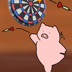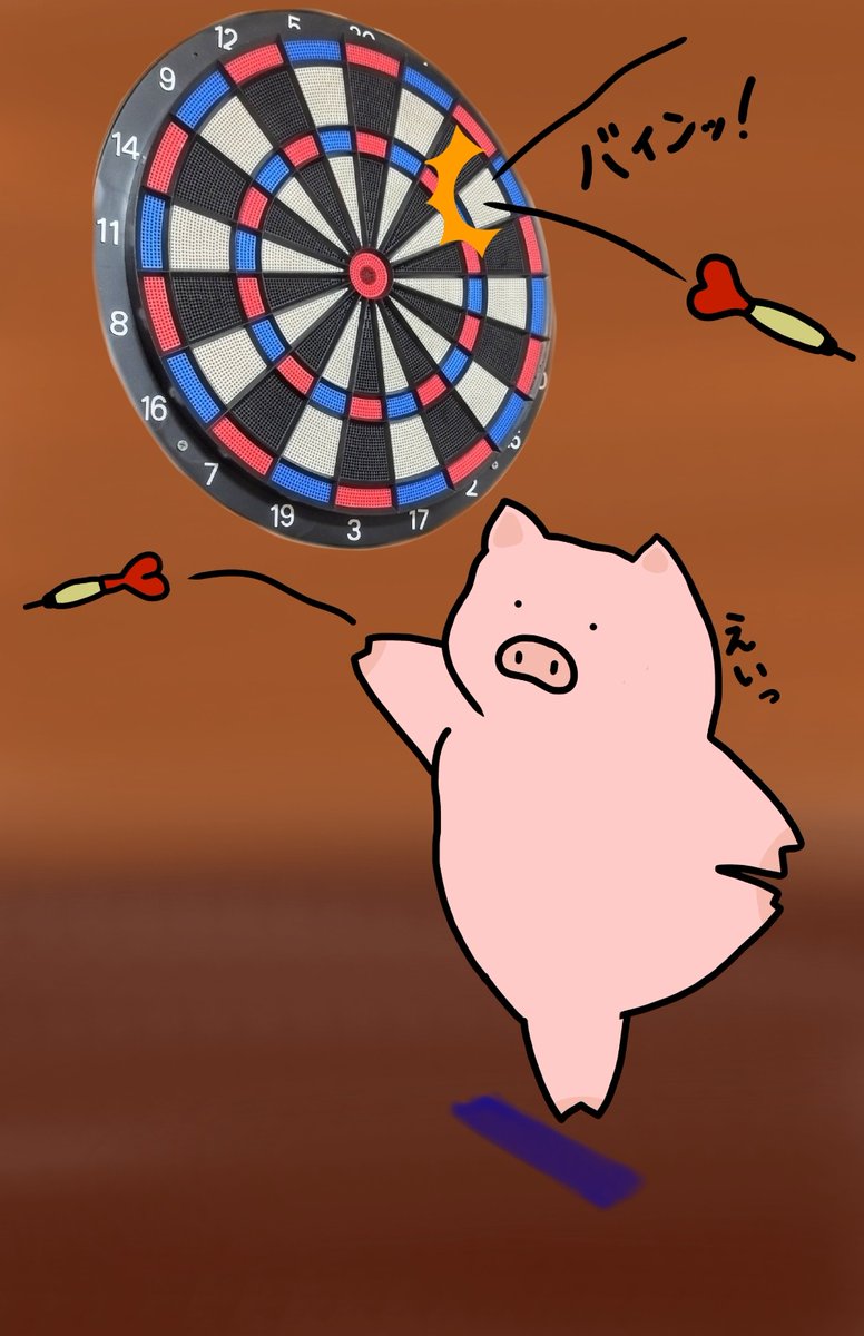 「ダーツが下手っぴなブタ」🐷 弟と 久々にダーツで遊んで来た なかなかキレイに飛ばないもんだなぁ と思いつつも 楽しんで来られたので良しとしよう #イラスト #絵描きさんと繫がりたい #ゆるいイラスト #illustration