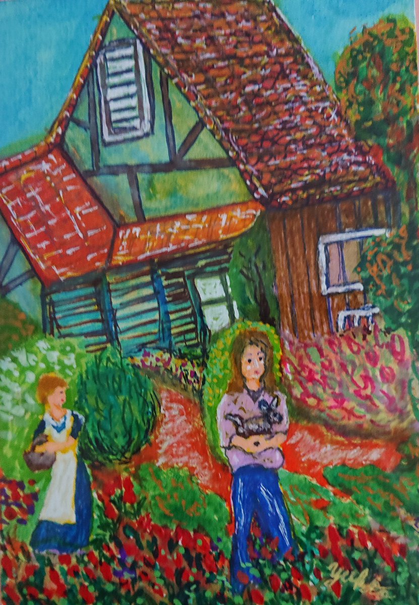 0 1 #水彩画 #厚塗り #ガーデンパラダイス #ヤギとお散歩 写真整理中 22/01/21 19:50