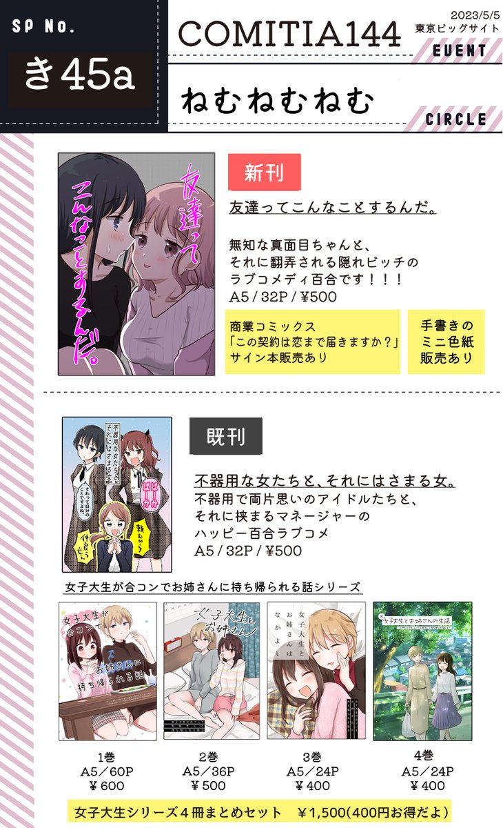 不器用な女たちと、それにはさまる女。 (2/2) メロンさん通販!(今回かなり少部数です)→melonbooks.co.jp/detail/detail.… #COMITIA143 #創作百合