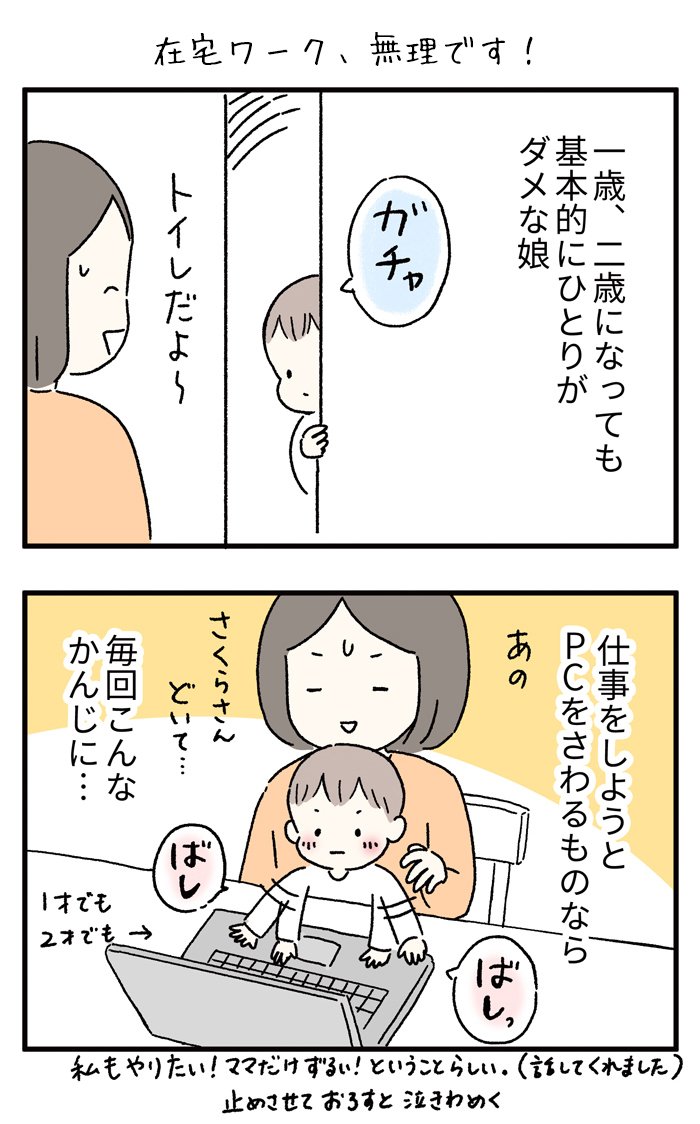 とりあえず、在宅ワークに限っては子供見ながらはほぼ不可能だったよという話🥺 ブログ更新しました〜もう一つ、後日漫画付け足す予定です。 ogawanote.net/coexistence/ #育児中ママ #一人遊び #4コマ #育児漫画 #育児日記 #育児疲れ #育児の悩みは尽きない