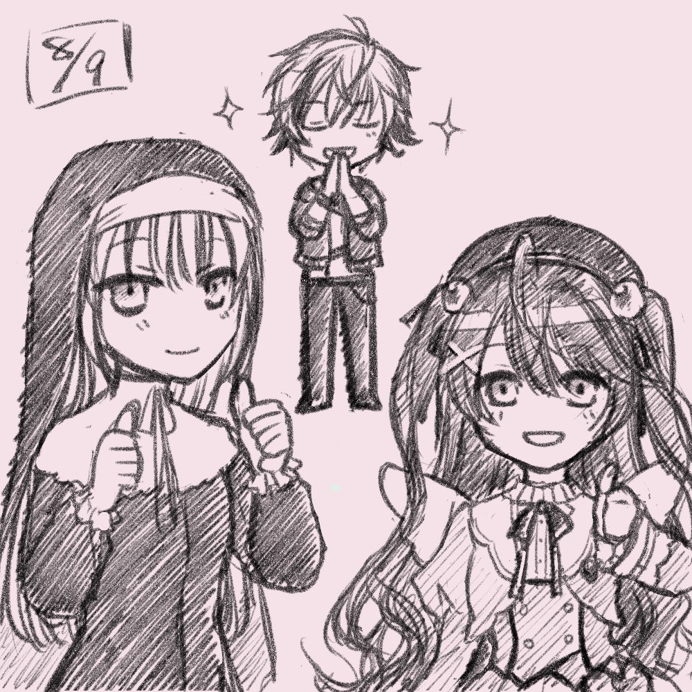 2人ともサムズアップすらもひたすら可愛いしシスターになむなむしちゃうのも可愛かった天国だった #にじさんじラジオ体操部 #絵スコート #描いたよクレアさん #絵こころ