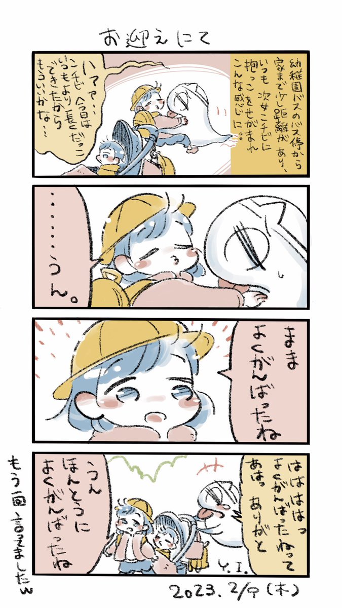 1 7 こチビの話。おチビは幼稚園バスから降りるなり、荷物を私に預けてお友達とスタスタ帰っていきます😌 #こチビの事 #チビ達の日常 #育児漫画 #漫画が読めるハッシュタグ 23/02/09 14:05