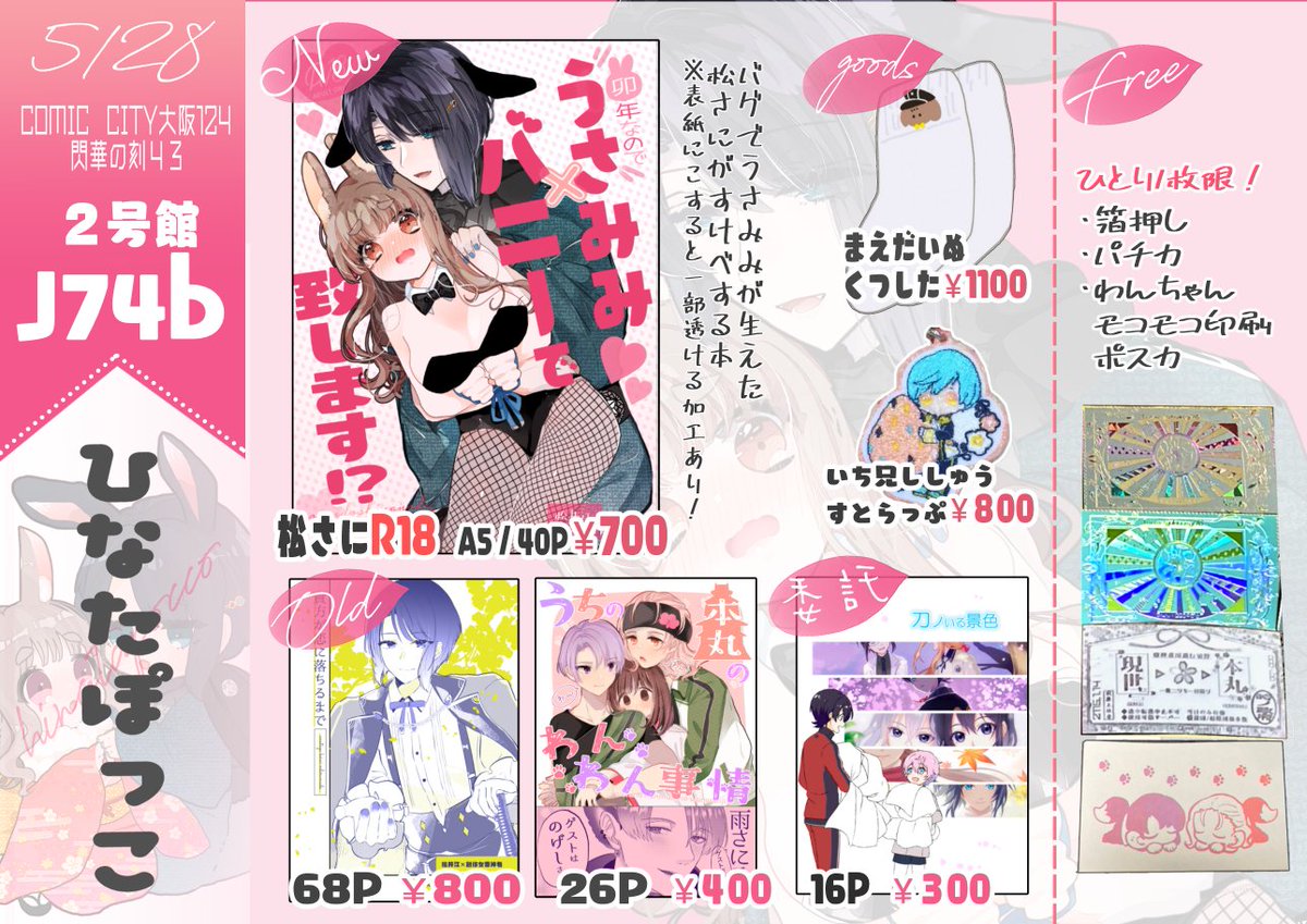 【サークル参加します!!】05月28日(大阪)COMIC CITY 大阪 124内 閃華の刻 43| #イベントGO_赤ブー akaboo.jp/event/item/201… サークルカットを差し替えました!松さにの新刊頑張ります!雨さにと雲さにの既刊ももっていきます~