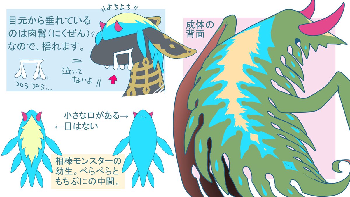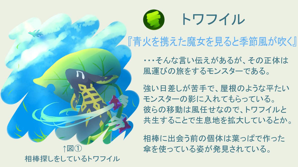 【トワフイル】 相棒と共に季節風を運ぶモンスターです。 メルスト8周年おめでとうございます!! #メルストイラコンモンスターデザイン