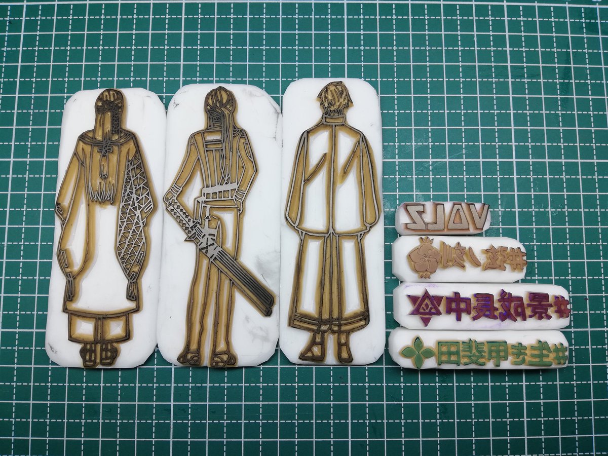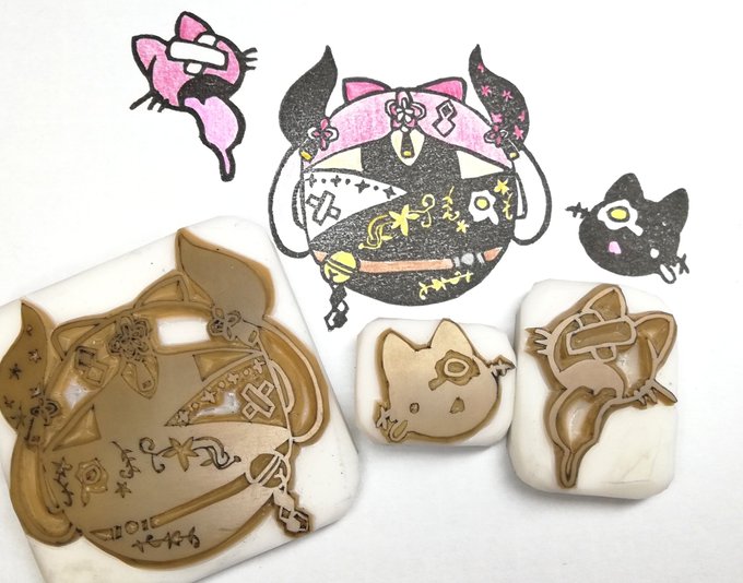 0 1 周年記念で彫ったり使ったりした消しゴムはんこ達~! オリジナルで作れるほどの画力がなかった🫠 #にじさんじ手芸部 23/04/02 10:54