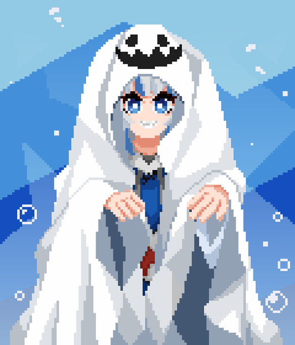 Shaaark tried experimenting with some styles and I really liked the results. #gawrt #pixelart #yureiwork