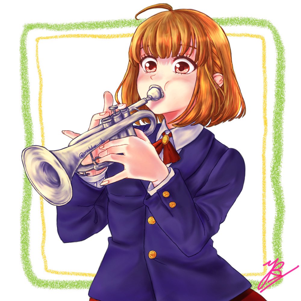 完成✩⡱ラッパ吹きの女子高生📣 個人的にはだいぶリベンジできた気がしてます !グリザイユは楽しい☺️ #グリザイユ #トランペット #創作イラスト #イラスト #絵描きさんと繋がりたい #イラスト好きな人とつながりたい