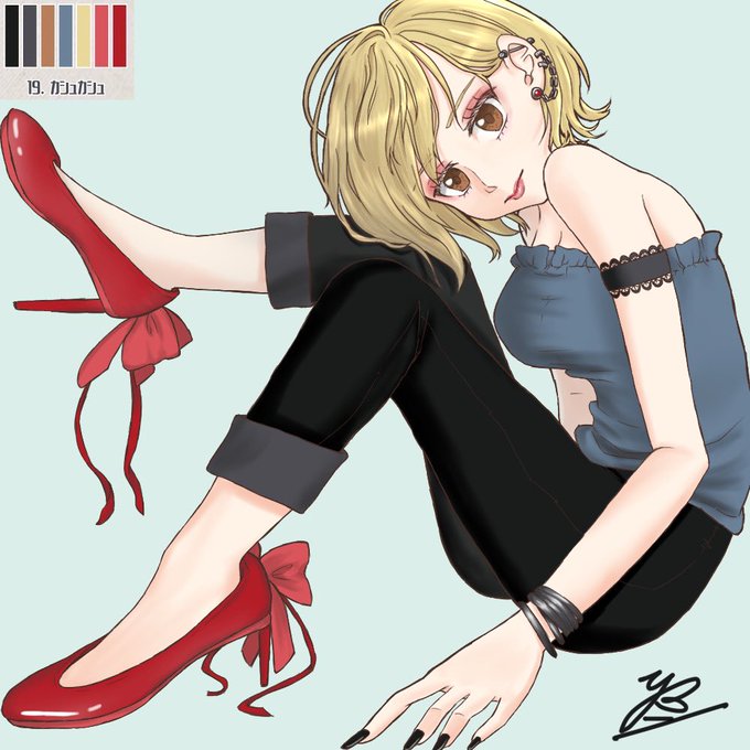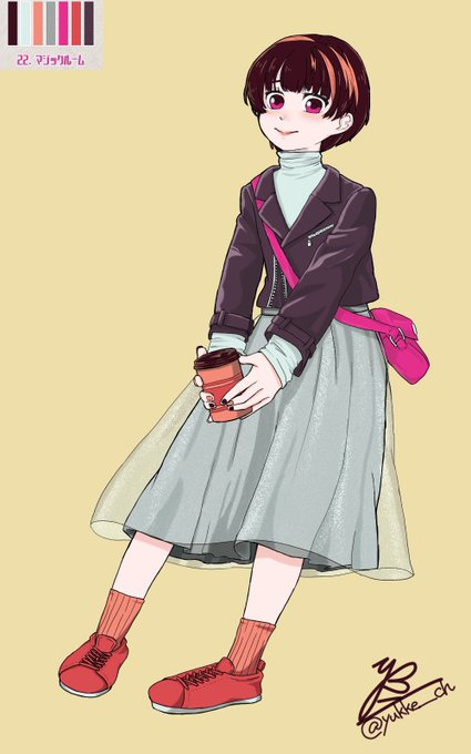 固定ツイご参照ください! @anzu_xoxo00 さんよりリクエスト頂いた 22 番のカラーパレットでイラスト描いてみました!はっきり発色させるためにアニメ塗りっぽくした!✨リプ本当にありがとうございました💕 #絵描きさんと繋がりたい #リプをもらった番号の色を使って絵を描く