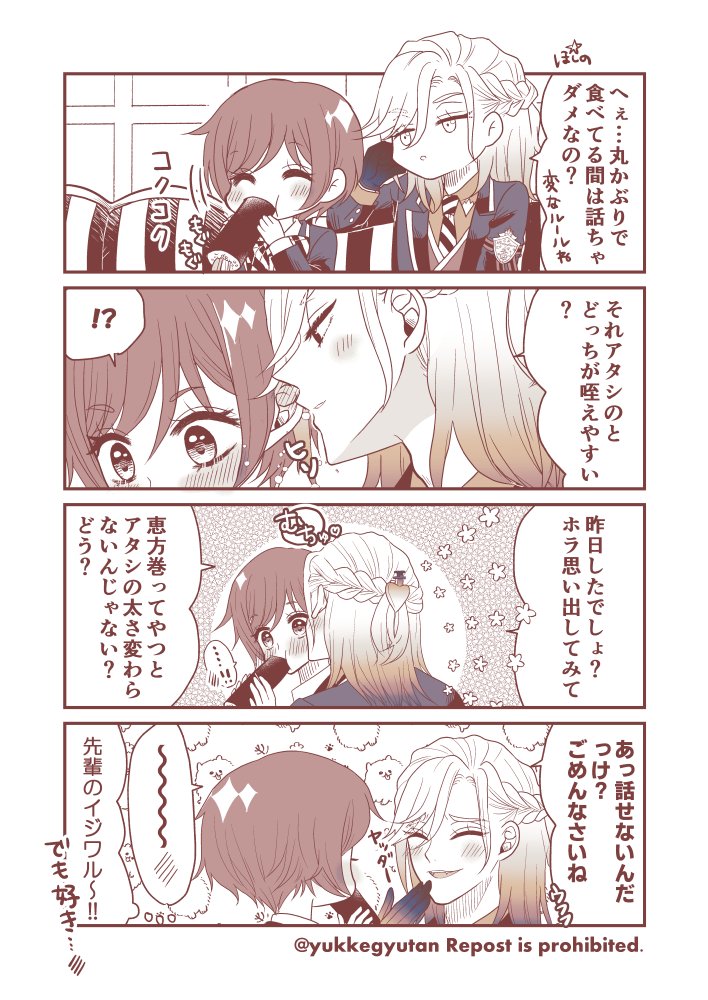 64 1282 ヴィ監♀(再掲) 今日は節分なので恵方巻きヴィ監再掲 安定の下ネタ…🫣💕 今年の恵方の方角は南南東ですね #twstプラス 23/02/03 18:07