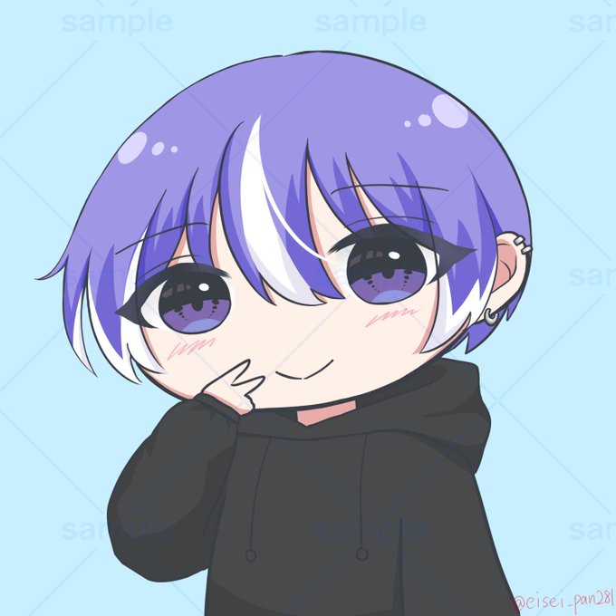ミニキャラのご依頼でした✨☺️ サンプル画像からもう可愛くて描いてて楽しかったです!青髪に猫耳のようなオレンジ色のアクセサリーの色の組み合わせが特に好みでした✨ #illustraion #アイコン依頼 #有償依頼