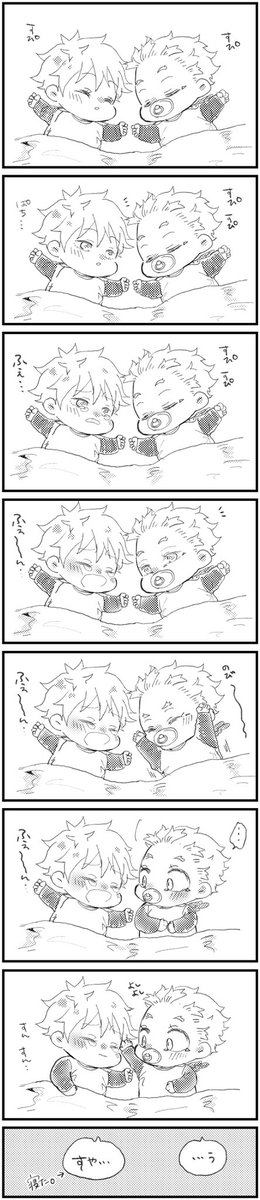 フォロワっさんとの会話で生まれたばぶホとばぶやくんの落書き漫画。この後ばぶホももう一回寝る。(縦に長い) twitter.com/914quincy/stat…